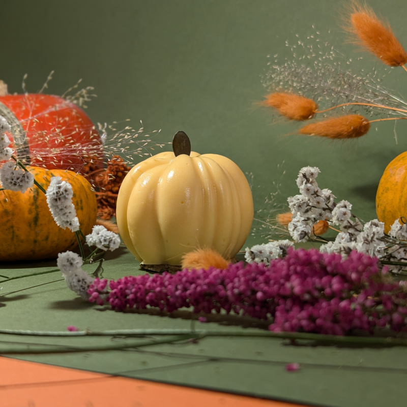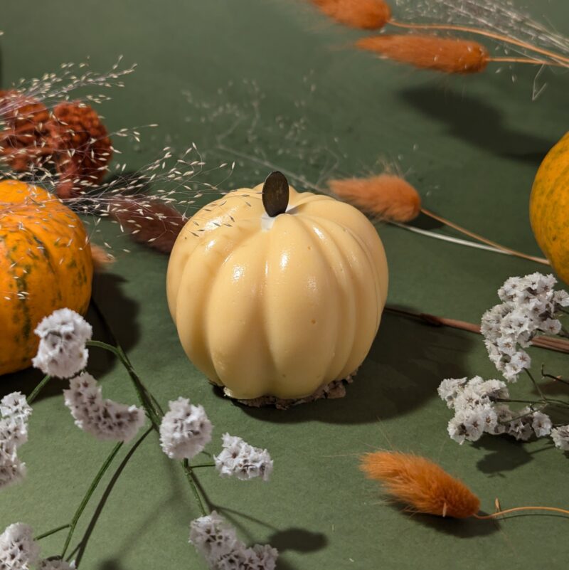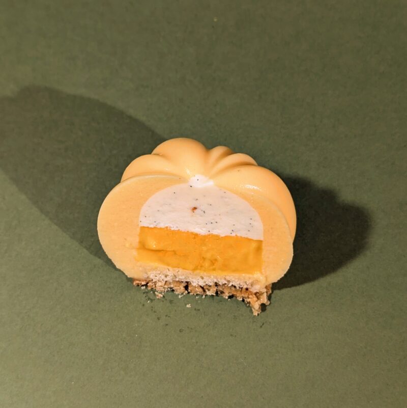 Citrouille en deux textures, vanille de Papouasie, biscuit croustillant aux graines de courge.